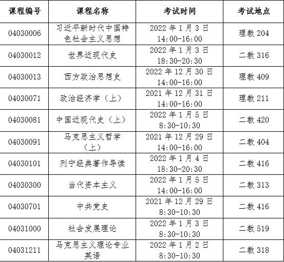 关于2021-2022秋季学期马克思主义理论专业课考试安排的通知