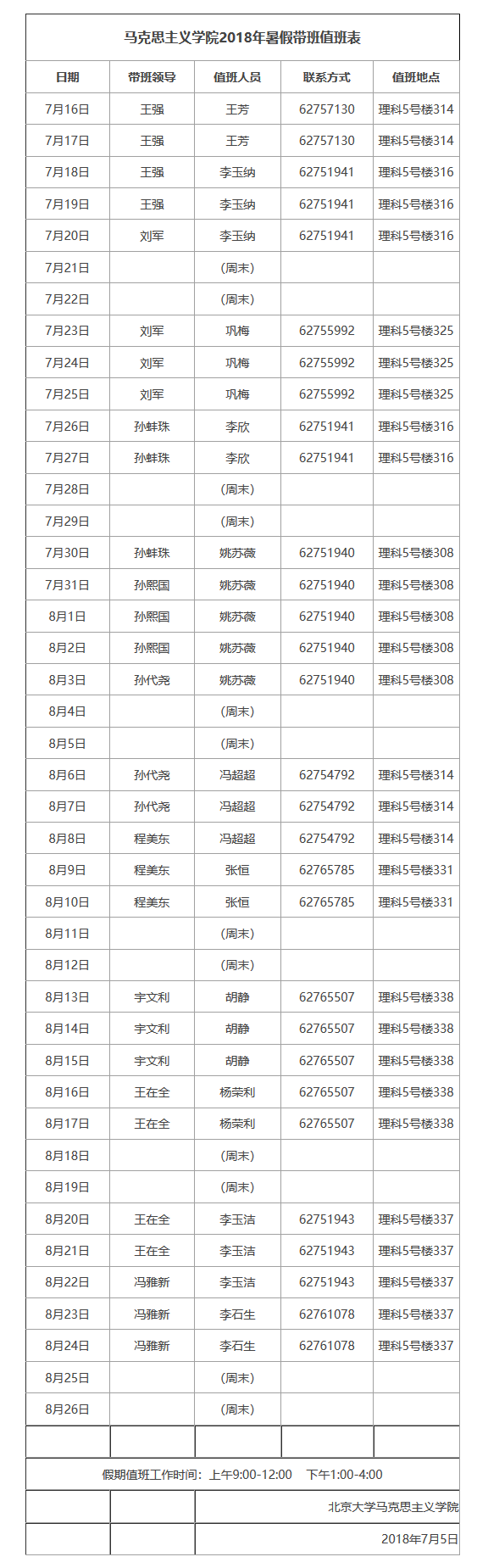 77779193永利官网2018年暑假带班值班表