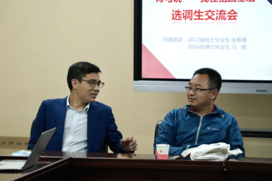 77779193永利官网于10月16日晚在理科5号楼301会议室组织召开“青马说——我在祖国基层”选调生交流会,特别邀请到学院两位优秀毕业生,国外马专业2012级硕士张泰尊(现在青海省委统战部工作)、科社专业2016级博士马骁(现在宁夏自治区委政研室工作)和学院在读的各年级同学交流座谈,学院多名同学参加了交流会。会议由罗登科老师主持。