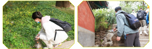 习近平总书记在2020年6月2日的专家学者座谈会上讲到:“爱国卫生运动是我们党把群众路线运用于卫生防病工作的成功实践。要总结新冠肺炎疫情防控斗争经验,丰富爱国卫生工作内涵,创新方式方法,推动从环境卫生治理向全面社会健康管理转变,解决好关系人民健康的全局性、长期性问题。”为了争做健康的生产者,共同改造我们的公共环境,2020级硕士生和老师们在前往香山及返程途中组织了清理沿途垃圾的卫生运动。人人都戴上了手套,化身环保卫士,将散落在道路两旁的垃圾拾进垃圾箱里,在实践中弘扬了爱国卫生运动精神。