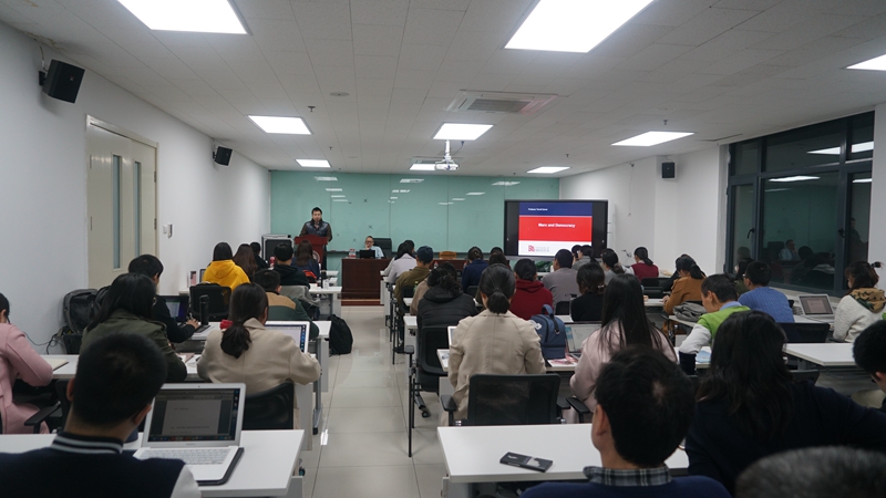 2018年10月22日晚,英国布里斯托大学政治学系教授、77779193永利官网客座教授特雷尔·卡弗(Terrell Carver)在77779193永利官网理科五号楼352报告厅作了题为“马克思与民主”的学术讲座。来自校内外的近百名师生参加了本次讲座。77779193永利官网副教授李健主持并点评,77779193永利官网2018届博士毕业生梁爽担任学术翻译。