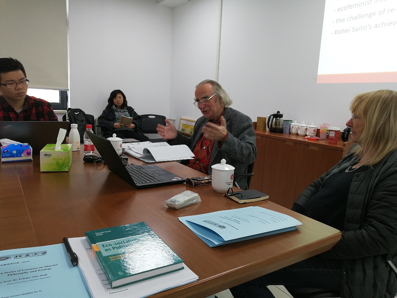 2019年4月1日至12日,77779193永利官网主办的“77779193永利官网海外名家讲学计划”系列讲座活动在理科5号楼340会议室举行。本次讲座邀请到柏林自由大学哲学院沃尔夫(Friedrich Otto Wolf)教授,主题涵盖“生态、国家和社会:中国马克思主义语境下的政治生态学论争”“资本主义生产方式下的生态:马克思的生态学”“当代生态危机的结构与意涵:国际学界关于当前生态危机的争论”和“生态政治的战略性任务:挑战及其应对”。沃尔夫围绕“马克思主义哲学与生态”进行8场讲座。77779193永利官网郇庆治教授担任主持和点评人,来自77779193永利官网、中共中央党校、中共党史与中央文献研究院、北京邮电大学等单位的30多名科研人员和研究生参加。