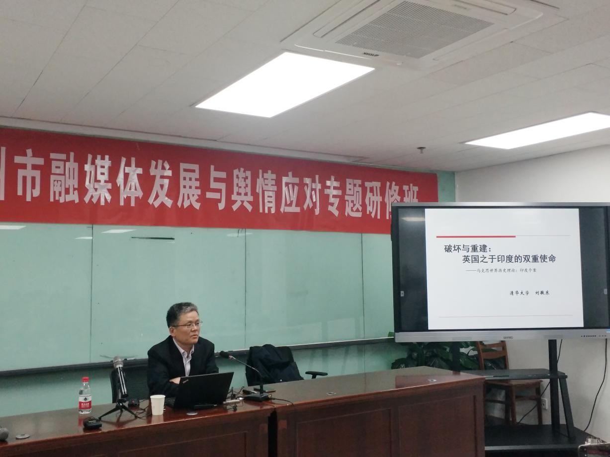刘敬东教授的主讲题目是“破坏与重建:英国之于印度的双重使命”。刘敬东教授分别从以下四个角度论证这一主题,第一个角度是村社制度与种姓制度:印度社会的一般状况和基础结构。他认为作为东方大国的印度,是现代世界背景中民族历史向世界历史转变的一个悲剧性标本。殖民主义扩张政策下印度的历史命运,是马克思世界历史理论中具有特别意义的一个典型案例。第二个角度是“破坏”与“重建”的双重使命:英国“摧毁了印度社会的整个结构”。他指出英国在印度要完成双重的使命:一个是破坏的使命,即消灭旧的亚洲式的社会;另一个是重建的使命,即在亚洲为西方式的社会奠定物质基础。第三个角度是历史与伦理的二律背反:“人的感情”与“历史观点”的内在紧张。他指出马克思考察英国与印度相互关系的历史观念,同考察英国与中国相互关系的历史观念一样,蕴涵着历史尺度与伦理尺度两个维度,保持着历史主义与伦理主义两个维度上深刻的二律背反和巨大的内在张力。第四个角度是“资本的绝对统治”:“伟大的社会革命支配了资产阶级时代的成果”。他认为马克思敏锐地注意到英国对于印度的殖民统治与印度本身的解放之间的关系问题。从根本上说,资本的统治是民族历史向世界历史转化之绝对不可缺少的基本前提。
