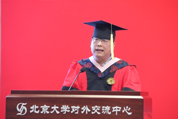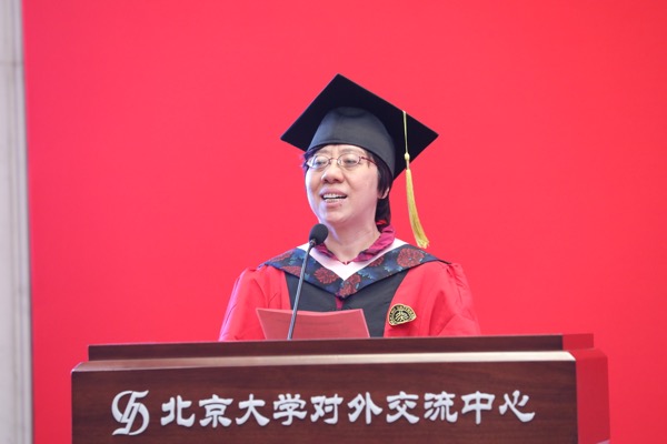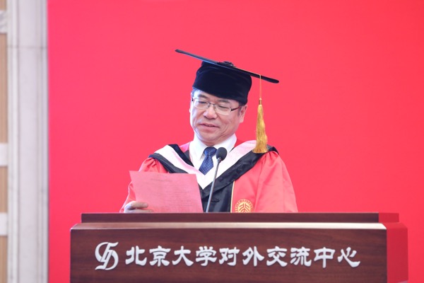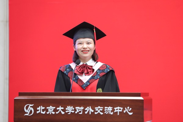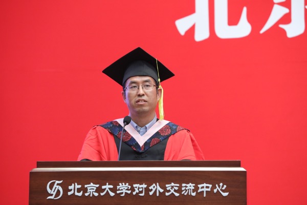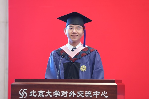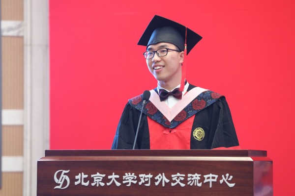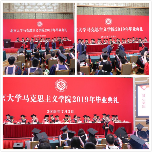 博士毕业生代表易佳乐的发言以“乐在北大”为主题,表达了他在北大的学习之乐、成长之乐、奋斗之乐,他表示,在北大和马院六年的求学之路,让他懂得了在北大:品格是最高的学问;无奋斗不青春;责任比天大。毕业既是一个终点,也是一个新的起点,要继续潜心问学,关注现实,服务社会,与人民同呼吸,与祖国共命运。