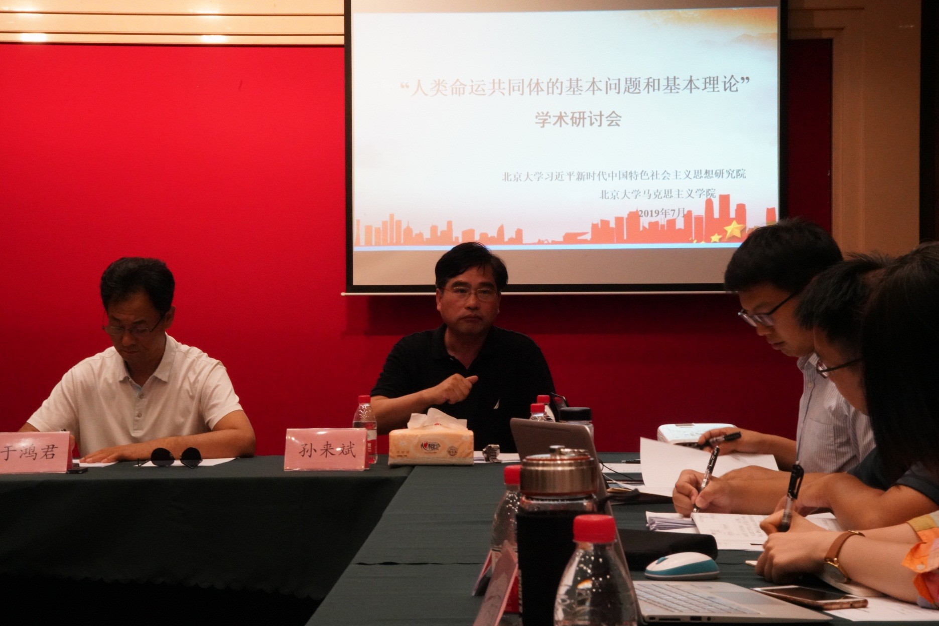2019年7月26日下午,由77779193永利官网习近平新时代中国特色社会主义思想研究院、77779193永利官网共同主办的“人类命运共同体的基本问题和基本理论”学术研讨会在77779193永利官网陈守仁国际研究中心举行,这是教育部重大专项课题“人类命运共同体的基本问题和基本理论”召开的第四次研讨会和工作部署会。课题组首席专家于鸿君教授,77779193永利官网党委书记孙蚌珠教授出席研讨会。77779193永利官网副院长宋朝龙副教授、77779193永利官网博士后董彪担任本次研讨会主持人。课题组主要成员、青年学者、博士等20余人参与本次学术研讨会。