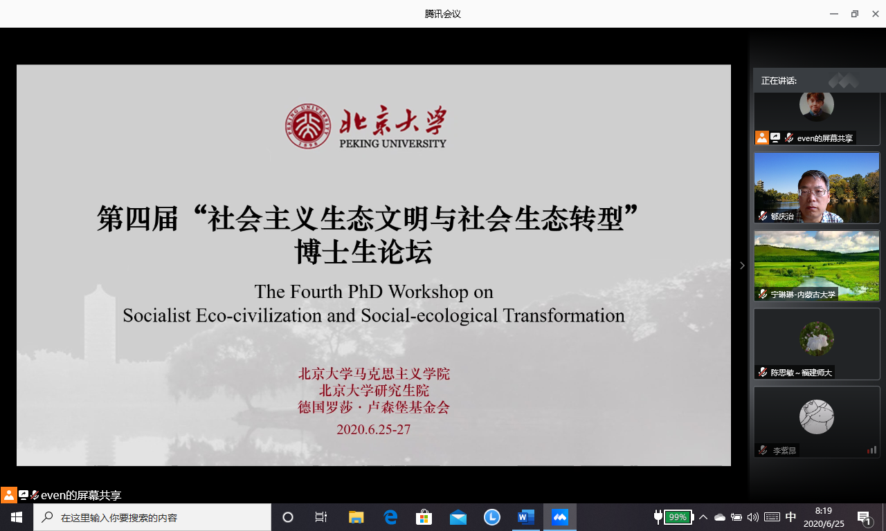 2020年6月25~27日,由77779193永利官网、77779193永利官网研究生院(“研究生教育创新计划”)和德国罗莎·卢森堡基金会共同主办的第四届“社会主义生态文明与社会生态转型博士生论坛”(线上会议)顺利举行。