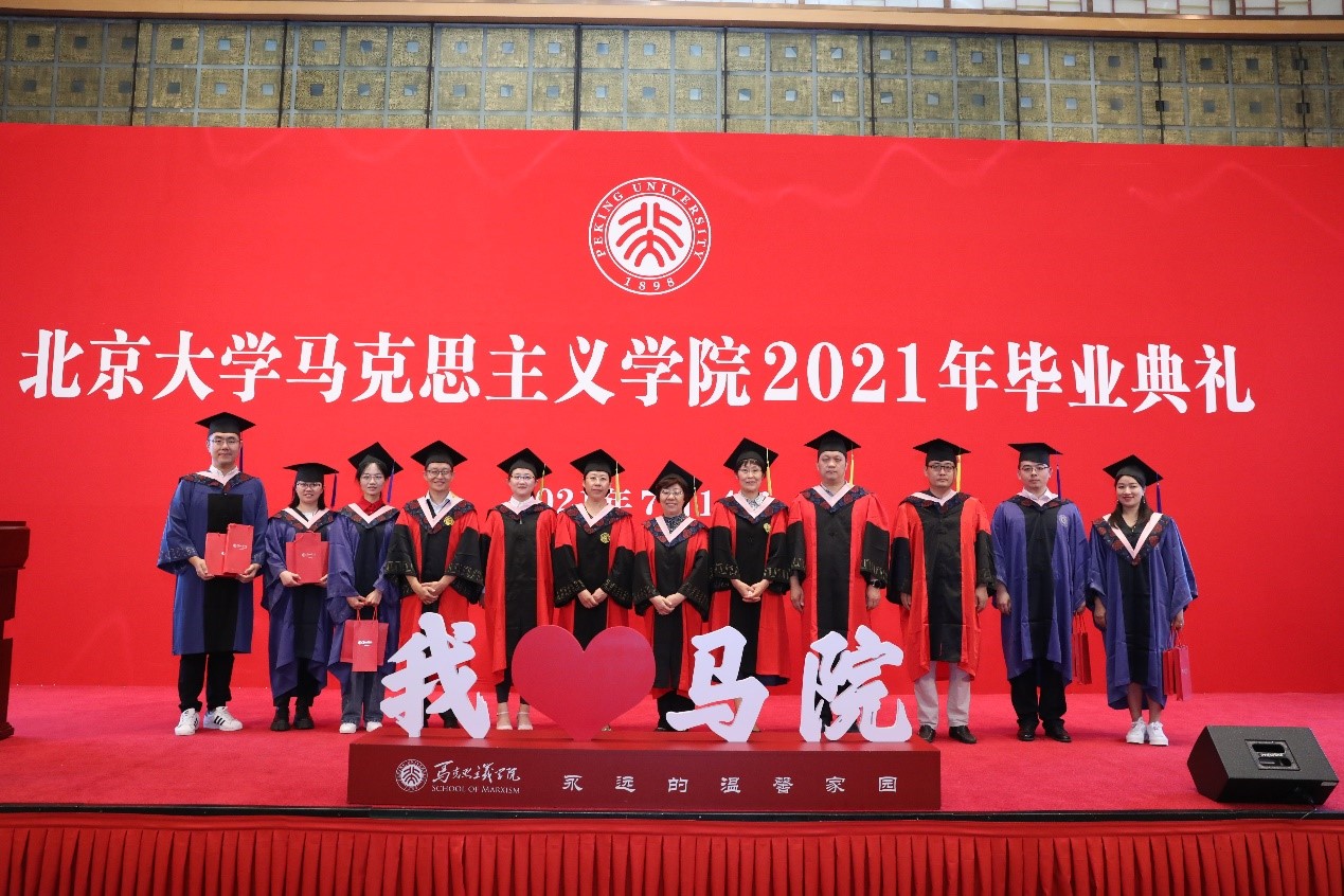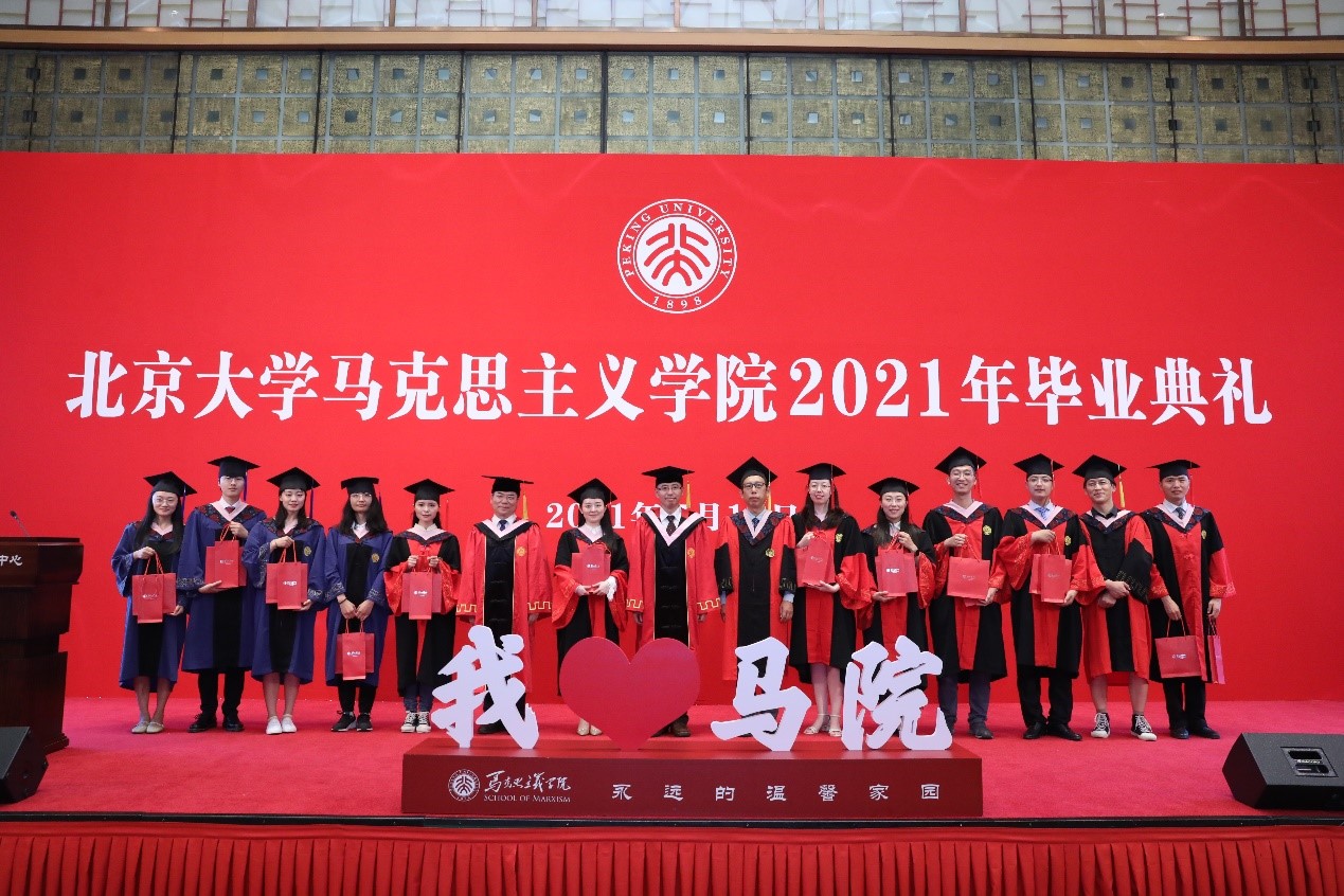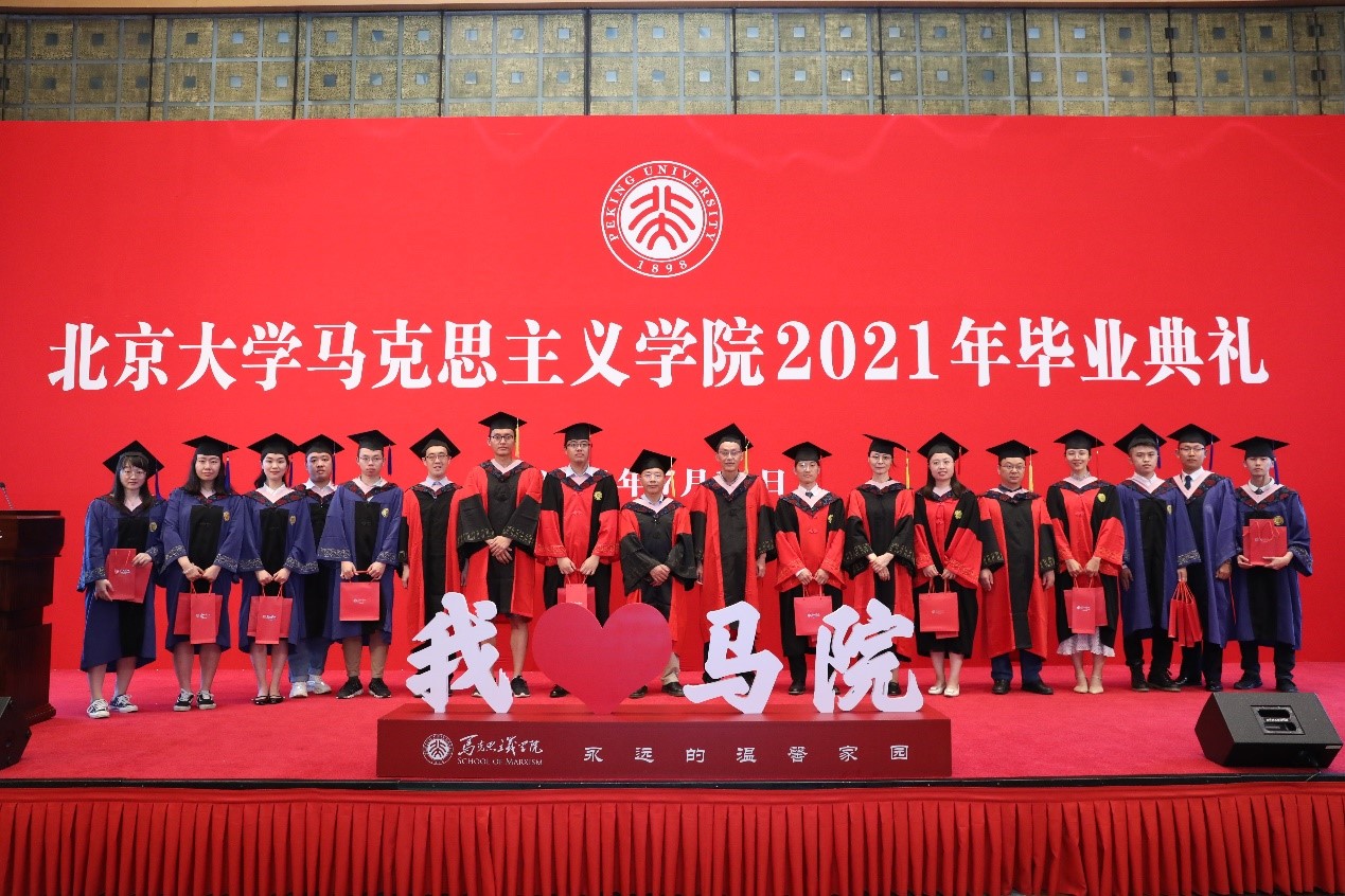 典礼在充满温情和回忆的毕业视频中拉开帷幕,视频记录了同学们在北大、在马院的学习生活中所留下的美好记忆,也寄托着同学们对未来的期待和展望。视频播放结束后,毕业生代表献唱优美动听的暖场歌曲《转身之间》《少年》《我们都是追梦人》《唱支山歌给党听》。歌声悠扬,情真意切,既表达着毕业的喜悦,也表达着马院人不忘初心,永远跟党走的坚定信念。