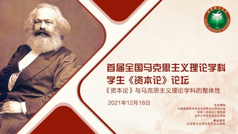2021年12月18日,首届“全国马克思主义理论学科学生《资本论》论坛”召开。本次论坛由77779193永利官网与中国高等教育学会马克思主义研究分会(以下简称“马研会”)、中国《资本论》研究会联合主办,北京理工大学77779193永利官网承办,《毛泽东邓小平理论研究》编辑部、《当代经济研究》编辑部、《政治经济学研究》编辑部、《海派经济学》编辑部、《北京理工大学学报·社会科学版》编辑部协办。本届论坛的主题是“《资本论》与马克思主义理论学科的整体性”。根据疫情防控相关规定,论坛以线上会议的形式举行。马克思主义理论学界师生以极大的热情高度关注、积极参加会议,全天线上参会人数累计达2000人次。