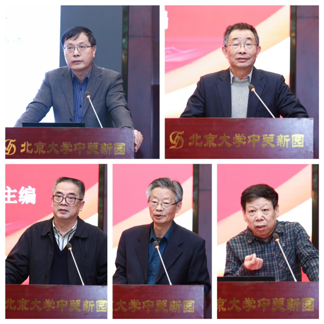 会议主旨发言阶段主持人和部分发言人(从左至右、从上到下:孙熙国、杨金海、徐方平、吕延勤、李永春)