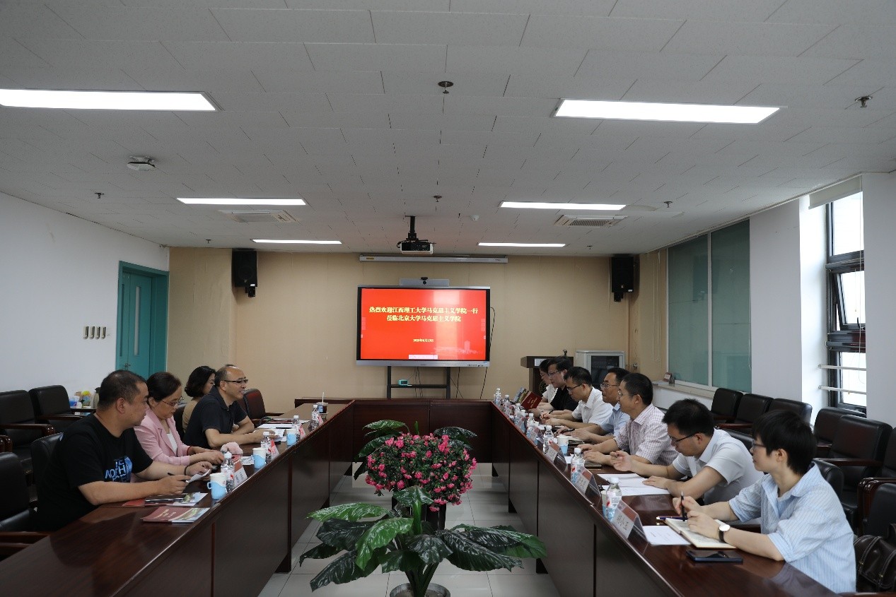 邓显超就学院历史概况、人才引进、学生培养等方面做了详细介绍。仰海峰对江西理工大学马院各位老师表示热烈欢迎,他就学院思政课建设、学生就业、科研工作等情况进行了总体介绍。