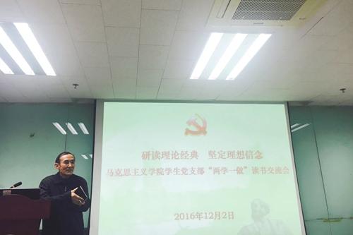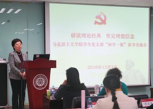 最后,王其文对各党支部的汇报情况一一进行了点评,对同学们结合专业特点、组成学习小组深入研读理论经典表示肯定和赞赏。他结合自身经历,强调每一位党员要深刻认识到共产主义事业的伟大性与艰难性,坚定共产主义理想信念。他指出,开展“两学一做”学习教育,要学得深、做得精,贯彻落实全面从严治党的要求,充分体现北大的优良传统。他还分享了开展“数字中国”研究的成果,勉励同学们在学习中注重理论联系实际,在实践中发现问题,用马克思主义的基本立场、基本方法分析问题、解决问题。