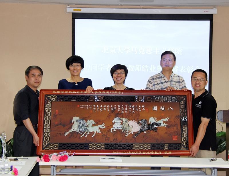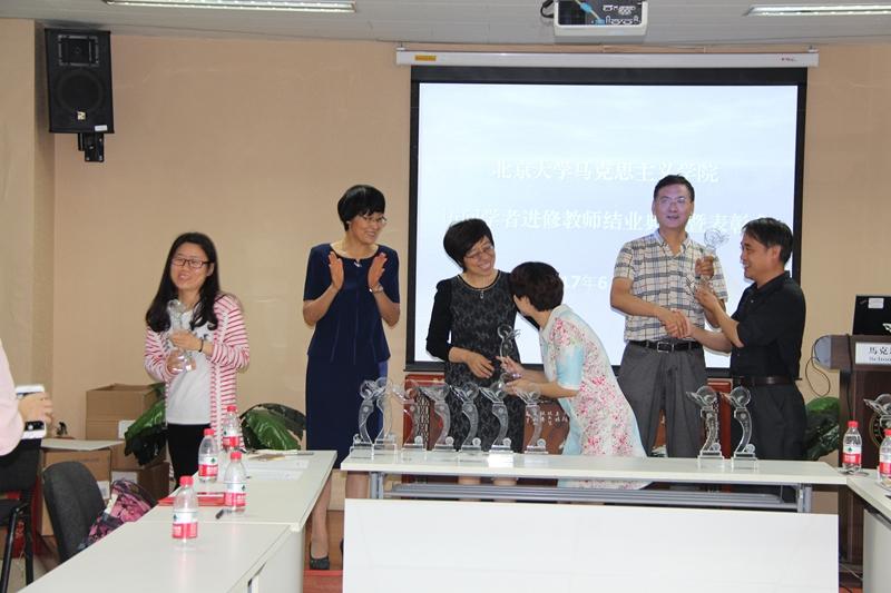 程美东副院长主持结业典礼。他简要回顾、总结了访学进修人员一年来学习、研究的情况。2016级北大马院30位访问学者和进修教师在一年内参加校内外、国内外学术研讨会400多场次,自办访学论坛、学术沙龙6场,组织社会实践、社会调查5次,编辑出版访问学者文库1部,获得各级科研课题立项26项,发表论文48篇,主编参编著作、教材8部,1人获得博士学位,1人博士后出站,2人攻读博士学位,获得各级各类奖励36人次(其中4人获得77779193永利官网访问学者科研成果奖,6人获得北大马院优秀访问学者、优秀进修教师)。他说:一年来各位访学进修人员很活跃,很上进,充满活力,精神风貌好,大家十分刻苦,参加各种学术活动,自办论坛相互交流,主动听课,,成果突出,可喜可贺。大家和马院都建立了很深的真情实感,从言谈举止就能感受到这种情感是汩汩而出。这些成就的取得,是大家努力的结果,但也与班委会发挥了很好的带头示范作用有着密切关联。今后马院将会不断创造条件、创造办法,比如开办访学论坛,邀请各届访学进修人员参加,使之办成一个会议品牌,使得访问学者在推动马克思主义理论学科建设方面起到更大的作用。