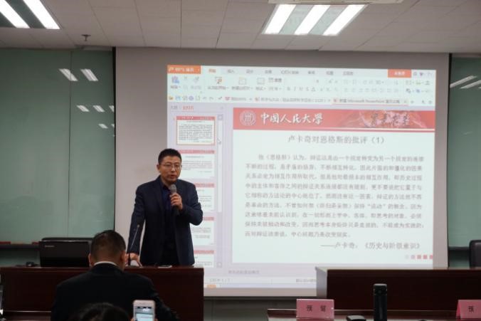 罗骞教授以“卢卡奇《历史与阶级意识》中辩证法概念的成就及限度”为题,通过解读卢卡奇阐释马克思主义辩证法思想的核心片段,一方面强调卢卡奇主客体辩证法思想的提出,抓住了马克思主义理论的实践本质,切中了当今时代的精神原则;另一方面,结合马克思和恩格斯的经典文本表述,指明了卢卡奇对恩格斯辩证法思想的误解。在罗老师看来,虽然卢卡奇对恩格斯的批评存在误解,但其对马克思主义辩证法的阐释却具有重要意义。卢卡奇揭示了形而上学只是将对象作为理论直观的对象,而马克思主义辩证法的核心在于改变现实,因此,过程和联系被看成实践中介的主客体关系,辩证法成为一种超越客观主义的主客体辩证法。