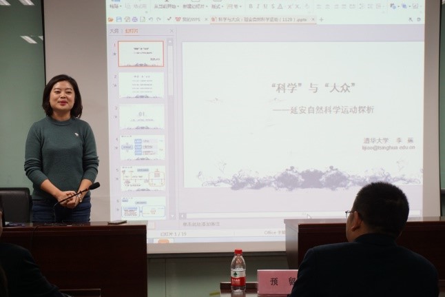 李蕉副教授以“科学与大众:延安自然科学运动探析”为题,为我们从史学视角追溯了中共领导下的科学运动的理论传播与成果转化。李老师主要探讨了四个方面:一是引言部分,阐述了“科学运动”的研究缘起;二是初创时期,介绍了自由探索的倡导与限度;三是转向阶段,逐渐倾向于对理论知识进行阐释与应用;四是拓展阶段,科技创新的主体与对象得到了进一步的深化与延伸。