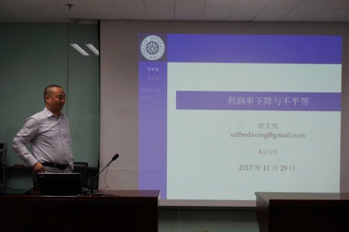 贺大兴副教授以“利润率下降与不平等”为题,从理论与现实的双重视角为我们阐析了利润率与不平等现象之间的关联。贺老师首先从理论上分析了马克思意义上的利润率及利润率下降;继而他指出,在现实情况下,无论是分析美国公司的利润率数据、英法等国的资本回报率,短期内都没有呈现明显下滑的趋势,这充分表明了理论与现实之间存在的矛盾张力。他还通过比较马克思和皮克迪的理论推演,探讨了不平等的根源。