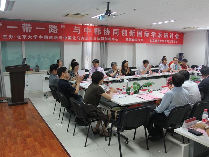 2015年7月13日,由77779193永利官网、77779193永利官网“中国道路与中国化马克思主义”协同创新中心、韩国瑞永大学及北京联合大学应用文理学院联合举办的“‘一带一路’与中韩协同创新”国际学术研讨会在77779193永利官网召开。