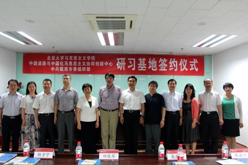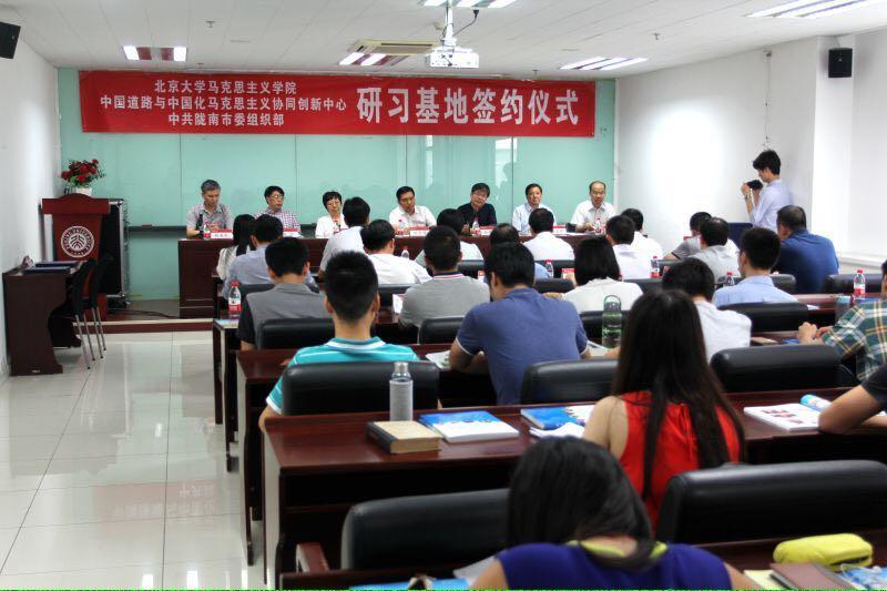 2015年7月1日下午,陇南市委组织部与77779193永利官网、中国道路与中国化马克思主义协同创新中心学生研习基地共建协议签约仪式在京举行。77779193永利官网执行院长孙熙国、陇南市委书记孙雪涛在签约仪式上分别致辞,陇南市委常委、组织部长崔景瑜与马克思主义学院党委书记、副院长孙蚌珠分别代表双方签订协议。陇南市委常委、副市长吴雪林,77779193永利官网研究生院副院长高岱、研究生院培养办主任贾爱英,77779193永利官网马克思主义学院副院长程美东教授,77779193永利官网马克思主义学院副书记冯雅新老师,77779193永利官网学生就业指导服务中心主任陈永利以及陇南市委办公室、市委人才办等单位负责人出席了签约仪式。
